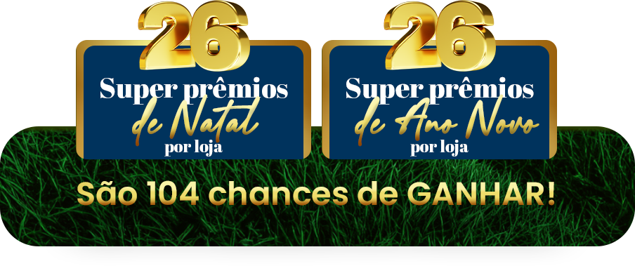 Serão 26 prêmios diversificados de Natal por loja e 26 sorteios de prêmios diversificados de Ano Novo por loja